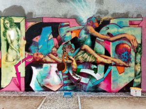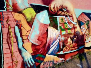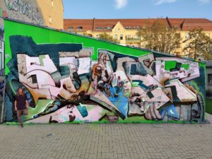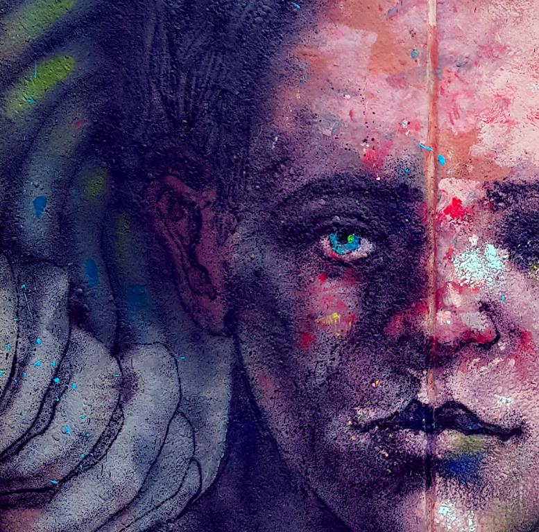 representation of a face, the most relatable thing for humankind, broken down in abstraction, complementary coulourfields, brushstrokes and shadows. Vibrating between the real and the transcendent. looking back at you. A 3 meter high face around the corner Ostkreuz demands it. -it? you will feel in presence!